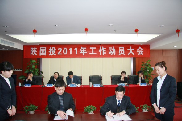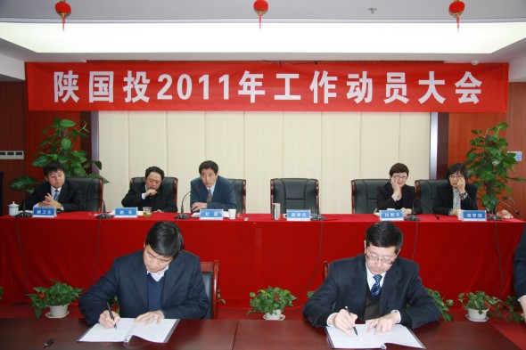 2011年2月10日,公司召開了陜國投2011年工作動員大會。公司領(lǐng)導、公司全體員工參加了會議。會議由公司常務(wù)副總裁杜磊主持,黨委書記、董事長薛季民作了動員講話,并對當前的要著重抓好的重點工作進行了部署。