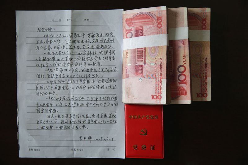 同時,他還上交了一份手寫的思想?yún)R報,在思想?yún)R報中他寫到“我這一生,父母養(yǎng)育我十五載,黨培養(yǎng)教育我至今已六十九年,現(xiàn)將我結(jié)存的養(yǎng)老金三萬元一次性上繳黨費,以報黨的培養(yǎng)之恩”。思想?yún)R報字跡工整認(rèn)真,看得出來寫的有些顫抖,無聲地道出了一名老黨員對黨的樸素的感情。