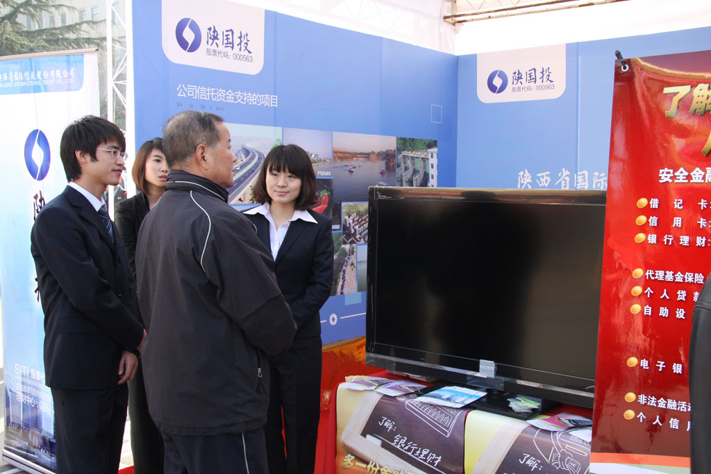 11月28日,按照中國銀監(jiān)會(huì)和陜西銀監(jiān)局的統(tǒng)一安排,公司在省體育場參加了“2010年中國銀行業(yè)公眾教育服務(wù)日活動(dòng)”啟動(dòng)儀式,并向現(xiàn)場群眾進(jìn)行了信托理財(cái)相關(guān)知識(shí)介紹和咨詢。