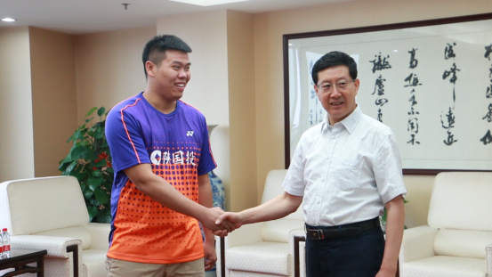 8月29日楊力驍將前往天津參加全運(yùn)會(huì)群眾組羽毛球決賽,臨近出發(fā)前,董事長薛季民特意前來祝賀。他表示,這次打入決賽,能代表陜西、代表公司前去“戰(zhàn)斗”,一定要發(fā)揚(yáng)體育精神,努力拼搏。最后,薛季民鼓勵(lì)道:“預(yù)祝你獲得好成績,我們都在公司等你凱旋而歸!”