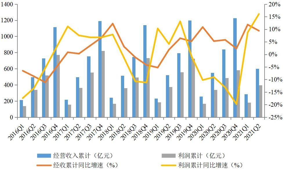 圖7 營業(yè)收入與利潤總額當年累計值及其同比增速