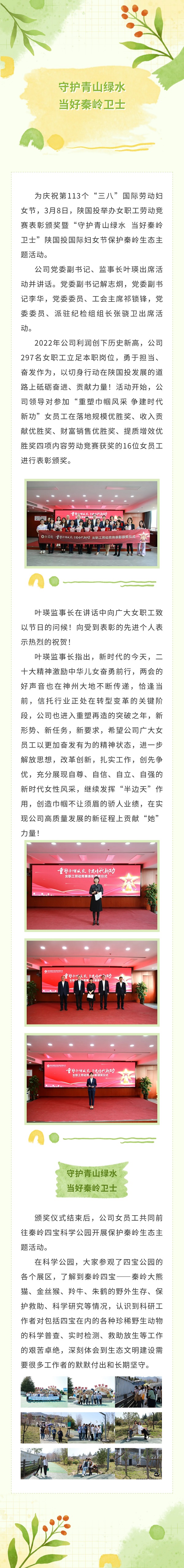 公司舉行女職工勞動(dòng)競(jìng)賽表彰頒獎(jiǎng)暨國(guó)際婦女節(jié)保護(hù)秦嶺生態(tài)主題活動(dòng)