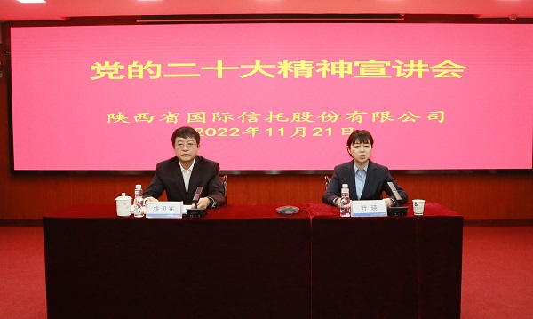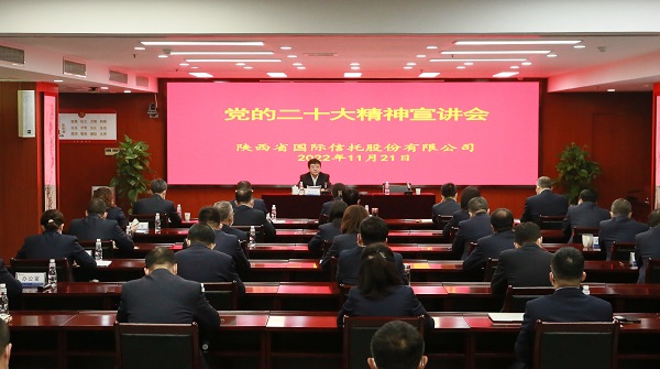 會(huì)議要求,公司上下要進(jìn)一步強(qiáng)化思想認(rèn)識(shí),深刻領(lǐng)悟“兩個(gè)確立”的決定性意義,切實(shí)增強(qiáng)“四個(gè)意識(shí)”、堅(jiān)定“四個(gè)自信”、做到“兩個(gè)維護(hù)”,不斷提高政治判斷力、政治領(lǐng)悟力、政治執(zhí)行力,更加自覺地用黨的二十大精神統(tǒng)一思想、統(tǒng)一意志、統(tǒng)一行動(dòng),緊跟習(xí)近平總書記奮進(jìn)新征程、建功新時(shí)代。要進(jìn)一步掀起學(xué)習(xí)熱潮,采取多種形式,組織廣大黨員干部員工原原本本學(xué)、全面系統(tǒng)學(xué)、持續(xù)深入學(xué),黨員領(lǐng)導(dǎo)干部要帶頭把好基調(diào)、把好導(dǎo)向,準(zhǔn)確、全面、生動(dòng)地宣講好黨的二十大精神,做好全方位、多層次、立體式宣傳解讀,讓黨的二十大精神入腦入心。要在理解二十大精神精髓要義、掌握立場(chǎng)觀點(diǎn)方法、把握基本規(guī)律上下深功夫、細(xì)功夫、硬功夫,以強(qiáng)烈的政治責(zé)任感和歷史使命感做好學(xué)習(xí)宣傳貫徹工作,切實(shí)把改革創(chuàng)新發(fā)展的力量凝聚到落實(shí)黨的二十大對(duì)金融工作的各項(xiàng)部署上來(lái),大力加快創(chuàng)新人才隊(duì)伍建設(shè),全力推動(dòng)黨建文化與企業(yè)文化、信托文化、清廉文化相融合,全面推動(dòng)“重塑再造陜國(guó)投”取得新成效。要弘揚(yáng)馬克思主義優(yōu)良學(xué)風(fēng),增強(qiáng)學(xué)習(xí)的針對(duì)性和實(shí)效性,立足本職工作,緊密聯(lián)系公司實(shí)際,堅(jiān)持學(xué)思用貫通、知信行統(tǒng)一,切實(shí)把貫徹落實(shí)黨的二十大精神體現(xiàn)到全面完成今年各項(xiàng)目標(biāo)任務(wù)和謀劃安排好明年工作目標(biāo)之中,體現(xiàn)到重塑再造陜國(guó)投的具體實(shí)踐中,體現(xiàn)到開展作風(fēng)建設(shè)專項(xiàng)行動(dòng)之中,埋頭苦干、奮勇前進(jìn),努力把學(xué)習(xí)黨的二十大精神所取得的成果轉(zhuǎn)化為公司改革發(fā)展的強(qiáng)大動(dòng)力,為奮力譜寫陜西高質(zhì)量發(fā)展新篇章貢獻(xiàn)陜國(guó)投力量。